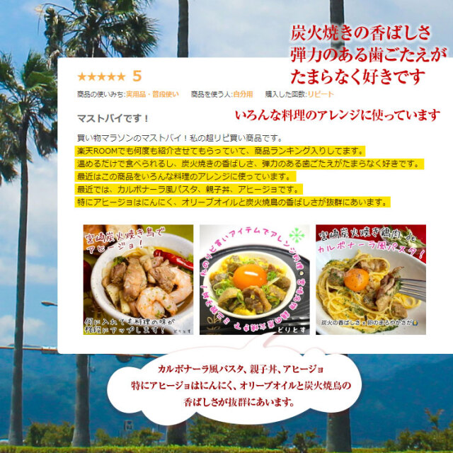 宮崎の炭火焼職人が監修した、香ばしく旨味たっぷりの味付けです。