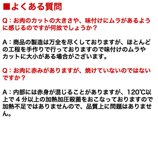 原材料:鶏肉(国内産)、砂糖(三温糖、上白糖、中ざら糖、グラニュー糖)、醤油、蛋白加水分解物、黒糖蜜、濃縮醤油、粉末醤油、醸造酢(りんご酢、穀物酢)、しょうゆ加工品、塩コショウ/増粘剤(加工デンプン、キサンタン)、調味料(アミノ酸等)、カラメル色素、甘味料(ステビア、カンゾウ、スクラロース)、(一部に小麦・大豆・鶏肉・りんごを含む)