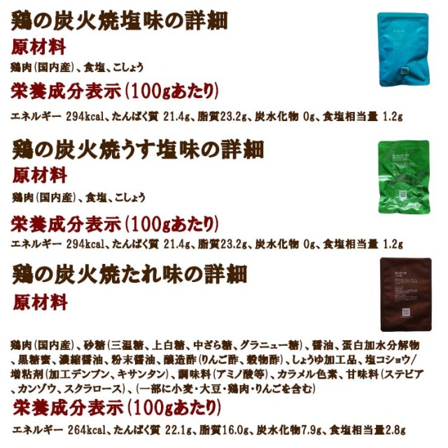 ~鶏の炭火焼(塩味・うすしお味・たれ味)20パック詰合せ~
