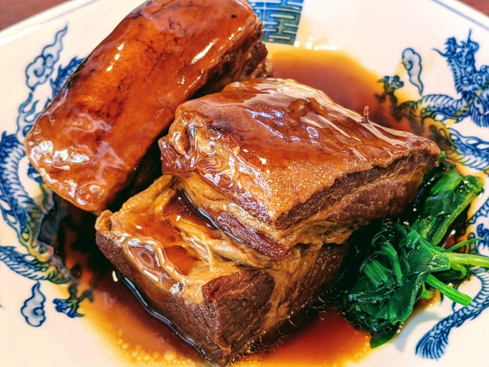 東坡肉は、文学者としても有名な蘇軾(そしょく)、通称「東坡先生」の名前に由来しており、彼が考案したとされる醤油ベースの煮込み料理です。五香粉や老抽(中国醤油)を用い、八角の香りが特徴的なこの料理は、現在の豚の角煮の元祖ともいえます。